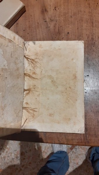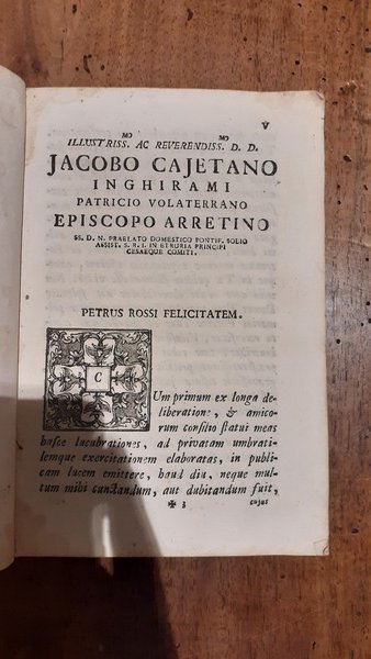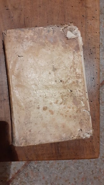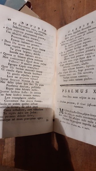 Volume in condizioni danneggiate de "Davidis Carmina" a cura di Pietro Rossi del 1759, edita in versi latini e accompagnata da illustrazioni.