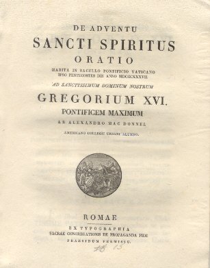 De Adventu Sancti Spiritus. Oratio habita in Sacello Pontificio Vaticano ad Sanctissimum Dominum Nostrum Gregorium XVI Pont. Max. a Alexandro Mac Donnel.
