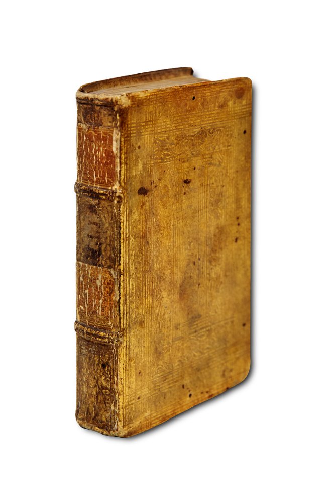 >in-8 (175x105 mm), ff. 4, 188, 24, 24, bel carattere corsivo. Importante legatura coeva in pelle di scrofa con impressioni a secco ai piatti e al dorso, due antichi tasselli in pelle con titolo in oro. Titolo con bordura xilografica figurata, iniziali decorate, impresa di Giunta al verso dell'ult. foglio, 136 silografie a 1/2 o 1/3 di pagina nel testo. Seconda edizione figurata con il commento di Fra Giocondo, celebre architetto veronese (1433-1515), e rara prima edizione in ottavo del testo vitruviano. Dopo il grande successo ottenuto con l'uscita a Venezia nel 1511 del "De architettura", nel 1513 venne proposta a Firenze questa seconda versione con numerose correzioni al testo, con le incisioni ridotte di dimensioni e con aggiunto il testo di Sesto Giulio Frontino (fine I sec. d.C.) "De aqueductibus urbis Romae". Bell'esemplare con ampi margini, in importante legatura del tempo (antica lieve nota di possesso parzialm. abrasa al tit., armi araldiche aggiunte a penna all'interno dello scudo della bordura). Cicognara 697. Fowler 394 ''first Giunta edition and first Pocket Vitruvius illustrated.'' Sander 7695. Kristeller, Florentine Woodcuts, 435. Berlin Katalog 1799. Camerini n.45.