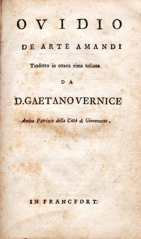 De Arte Amandi. Tradotto in ottava rima toscana da D. Gaetano Vernice Antico Patrizio della Città di Giovenazzo.