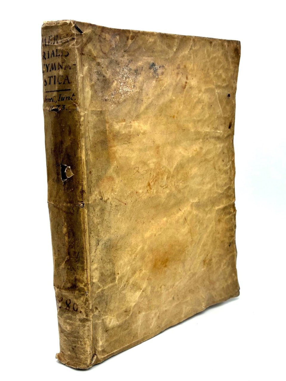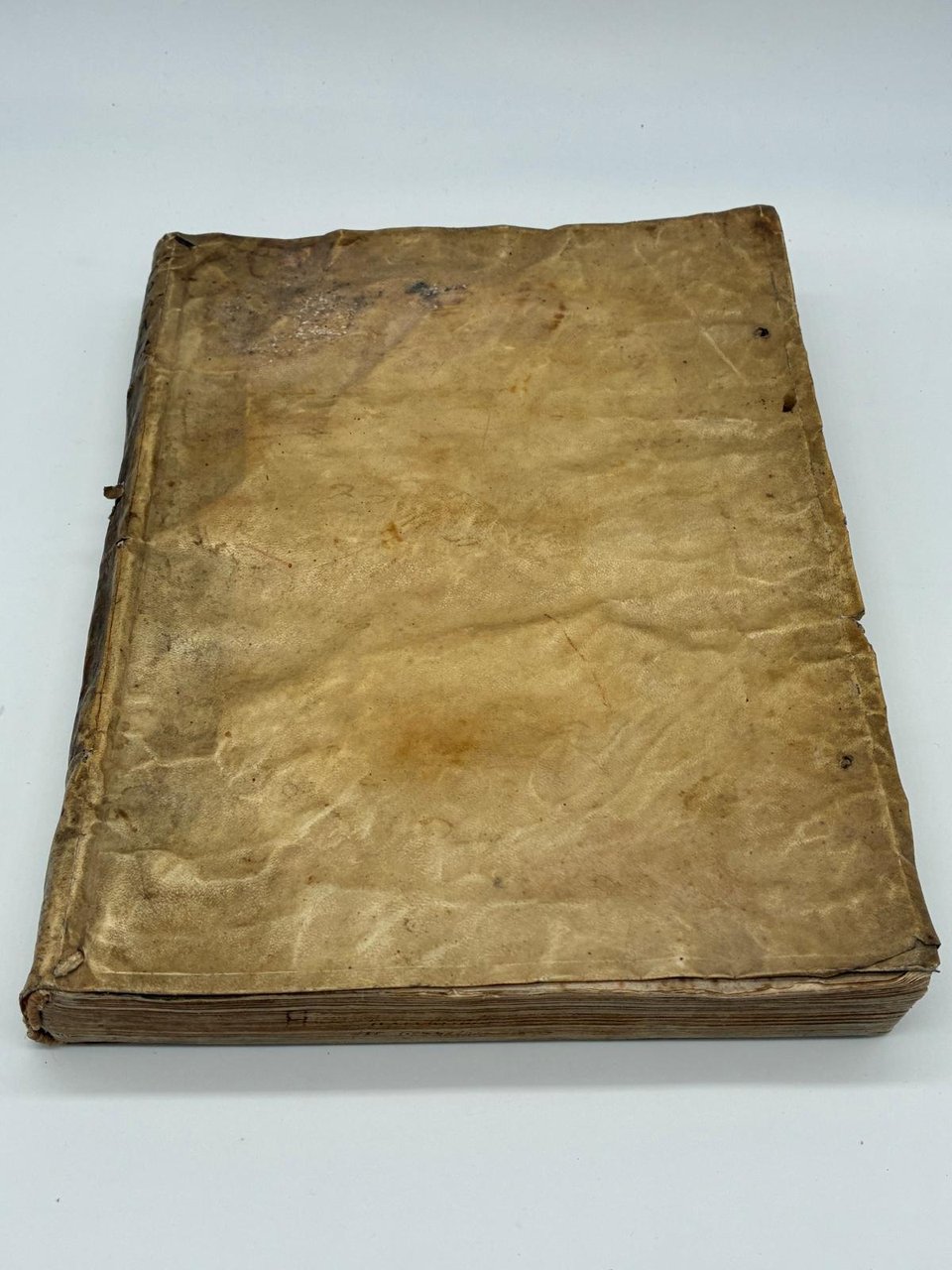 Legatura coeva in pergamena con unghiatura, tracce di due bindelle e titolo manoscritto al dorso (piccoli difetti).