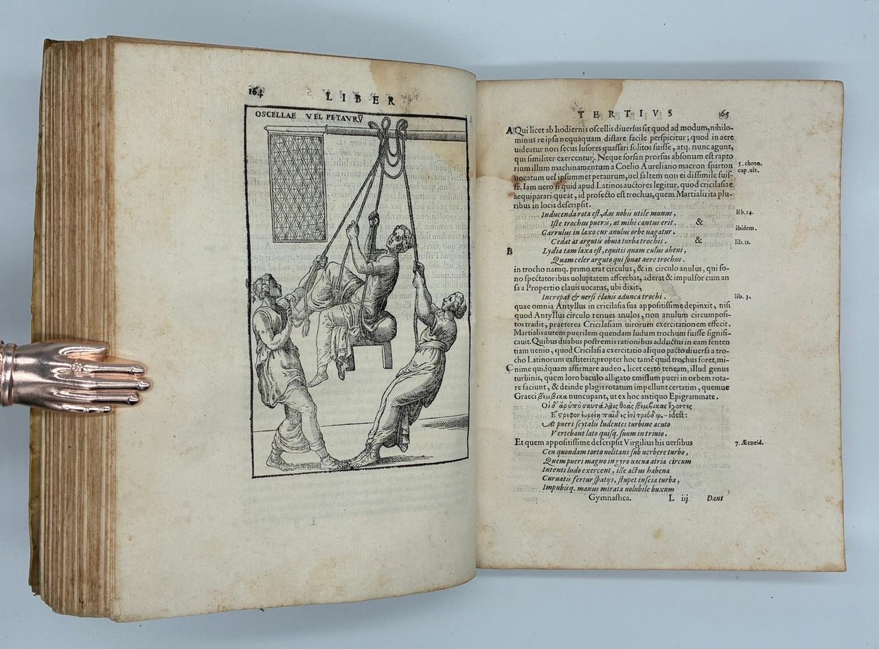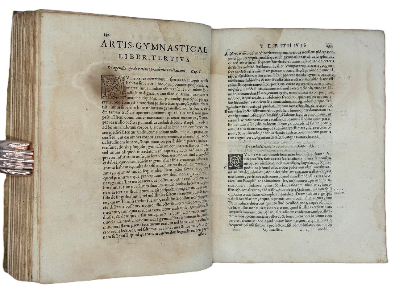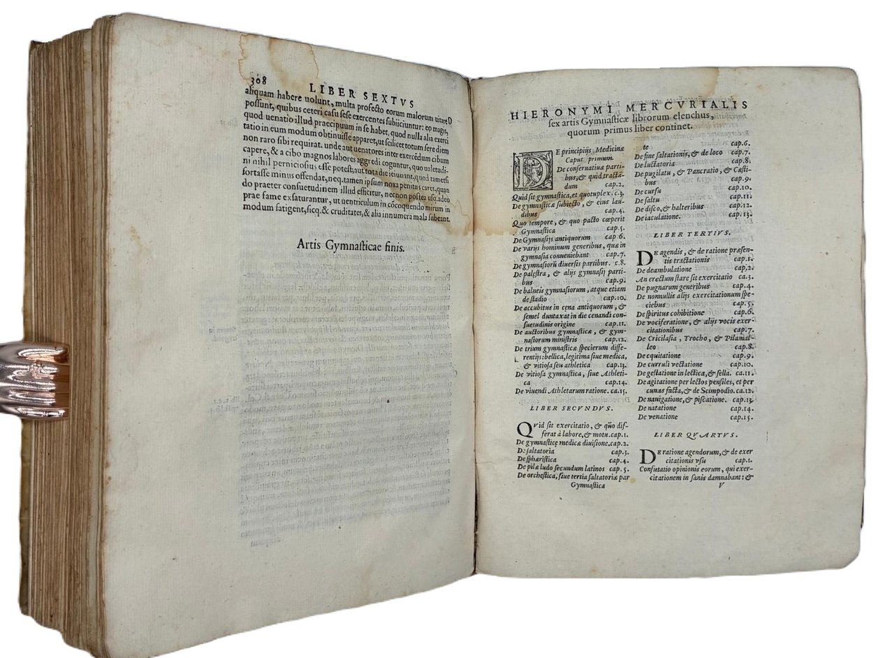 Prima edizione illustrata in legatura coeva del primo trattato moderno sulla ginnastica e sulla medicina sportiva.