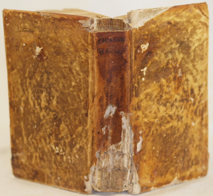 In 16. Dim. 16,5x9 cm. Pp. (6)+395+(7). Bella edizione del 1753 di questa utile opera di retorica del gesuita e professore di retorica Dominique de Colonia (1660-1741). De Colonia fu anche libraio, archeologo, storico e poeta. All'interno: elementi di retorica (favola, narrazione, amplificazione), Elocuzione, Invenzione, Disposizione, Orazioni, pronuncia, poetica ecc. Manoscritto alla prima carta bianca su alcuni esempi di grammatica. Lingua latina. In buone condizioni e completo. Copertina in piena pergamena coeva con titolo manoscritto al dorso in mediocri condizioni generali con usure e parti mancanti ai margini e dorso (vedere foto). Legatura in buone condizioni. All'interno le pagine si presentano in buone condizioni con rare fioriture. Segni di tarlo al margine inferiore delle prime due carte senza perdita di testo e all'ultima carta con leggera perdita di testo. Edition of 1753 of this useful work of rhetoric by the jesuit and teacher of rhetoric Dominique de Colonia (1660-1741) De Colonia was also librarian, archaeologist, historian and poet. Latin language. inside: elements of rhetorycs (tale, narration, amplification), Elocution, invention, Disposition, Orations, pronounciation, poetry ecc. Handwritten text in the first white page about poetry. In good conditions and complete Full parchment cover with handwritten title in the spine in poor general conditions with wearings and missing parts in the edges and spine (see the photo). Binding in good conditions. Inside pages are in good conditions with occasional foxings. Worming in the lower edge of the first two pages with loss of text and in the last page with slight loss of text.