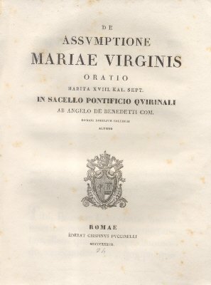 De Assumptione Mariae Virginis. Oratio in Sacello Pontificio Quirinali ab Angelo de Benedetti.