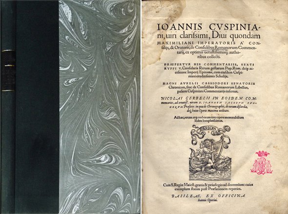 De Consulibus Romanorum Commentarii ex optimis vetustissimisque authoribus collecti. Praefertur his Commentariis, Sexti Ruffi V. Consularis Rerum gestarum Pop. Rom. deque accessione Imperij Epitome, cum eiusdem Cuspiniani eruditissimis Scholiis. Magni Aurelii Cassiodori Senatoris Chronicon, sive de Consulibus Romanorum Libellus, passim Cuspiniani Commentariis insertus. Nicolai Gerbelii In Eosdem Commentarios, ad . D. Ioannem Iacobum Fuggerum Praefatio in qua de Chronographis, de eorum discordia, deque huius Operis maxima. (Junto con:) Austria. Cum omnibus eiusdem marchionibus, ducibus, archiducibus, ac rebus praeclaré ad haex usque tempora ab iisdem gestis. Eiusdem Ioannis Cuspiniani Oratio proteptica ad Sacro Romano Imperii principes et