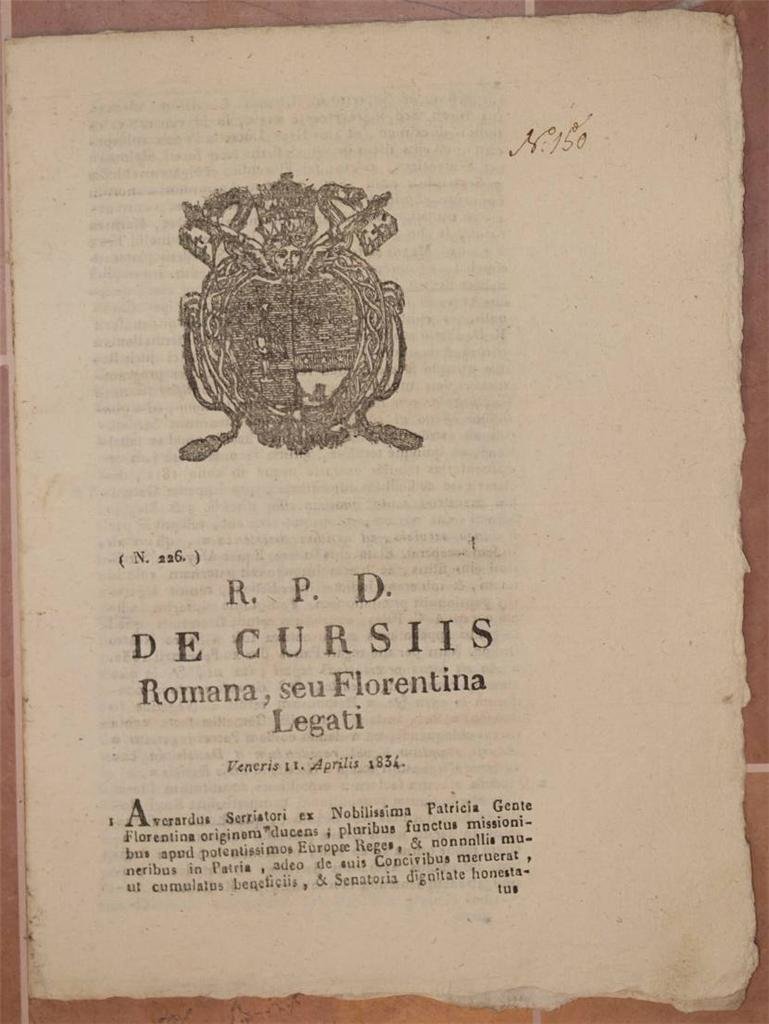 DE CURSIIS ROMANA SEU FLORENTINA LEGATI VENERIS 11 APRILIS 1834
