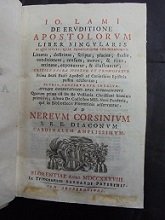 FLORENTIAE, PAPERINII, 1738. In 8∞picc.: pp. XVI + 446. Leg. in pergamena coeva. Macchie il piatto anteriore. Tracce di vecchia umidit‡. Ricerca storica sulla vita degli apostoli e dei primi cristiani, in particolare spiega le cattive condizioni sociali della maggior parte di loro, il loro basso livello d`istruzione, nonch alcuni dettagli curiosi come le loro abitudini di abbigliamento.ecc. Primo trattato del battagliero filo-giansenista Lami (1697-1770).