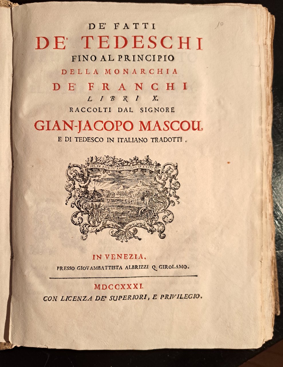 De' fatti de' Tedeschi fino al principio della monarchia de' Franchi Libri X. Raccolti dal Signore Gian-Jacopo Mascou e di tedesco in italiano tradotti