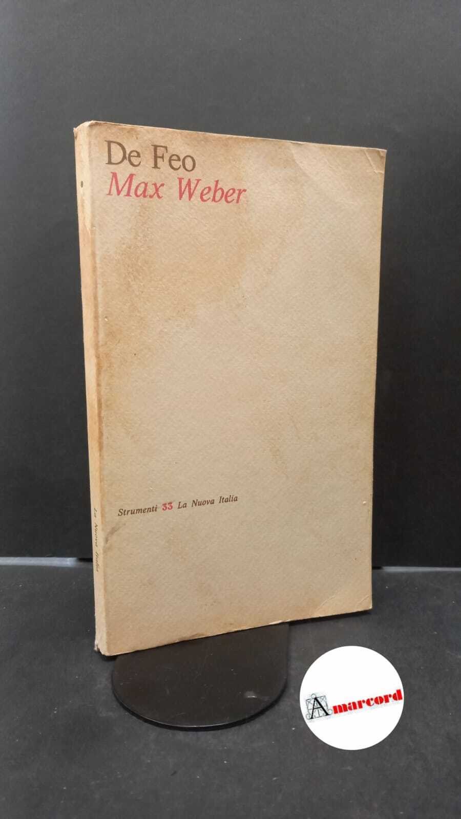 1004 De Feo, Nicola Massimo De Feo, Nicola Massimo. Max Weber Firenze La Nuova Italia, 1975. , La Nuova Italia 1975 italiano, in ottavo 168 40713