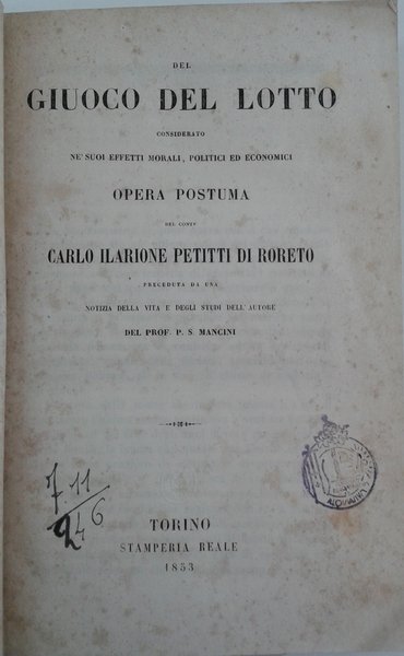 De giuoco del Lotto considerato ne' suoi effetti morali, politici ed economici