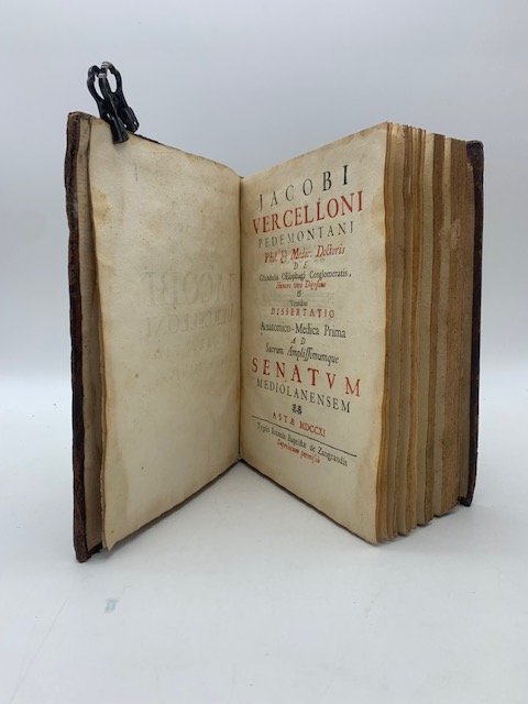 In 8, cm 17 x 22,5, pp. (20) + 274 + (2). Frontespizio in rosso e nero. Piena pelle coeva con fregi oro al dorso e nervature. Qualche spellatura e danno riparato al dorso. Edizione originale di questo trattato dedicato allo stomaco, all'intestino e alle relative affezioni. Un capitolo e' dedicato alla presenza dei vermi e alla cura. Dedica al Senato milanese data in San Damiano d'Asti in data 1o dicembre 1711. Raro studio di carattere gastroenterologico opera di questo medico, originario di Sordevolo nel vercellese. Studio' a Montpellier, nel 1699 si trasferi' a Roma presso l'ospedale di Santo Spirito nel 1703 torno' in Piemonte, prima ad Asti e poi a San Damiano d'Asti pratico' la medicina sino al 1724. Vicino alle teorie di Descartes segui' anche le scoperte anatomiche del Lancisi e del Baglivi. Blake, p. 471. De Gregory, Istoria della vercellese letteratura, p. 315. Manca a Durling, Garrison-Morton, Krivatsky.