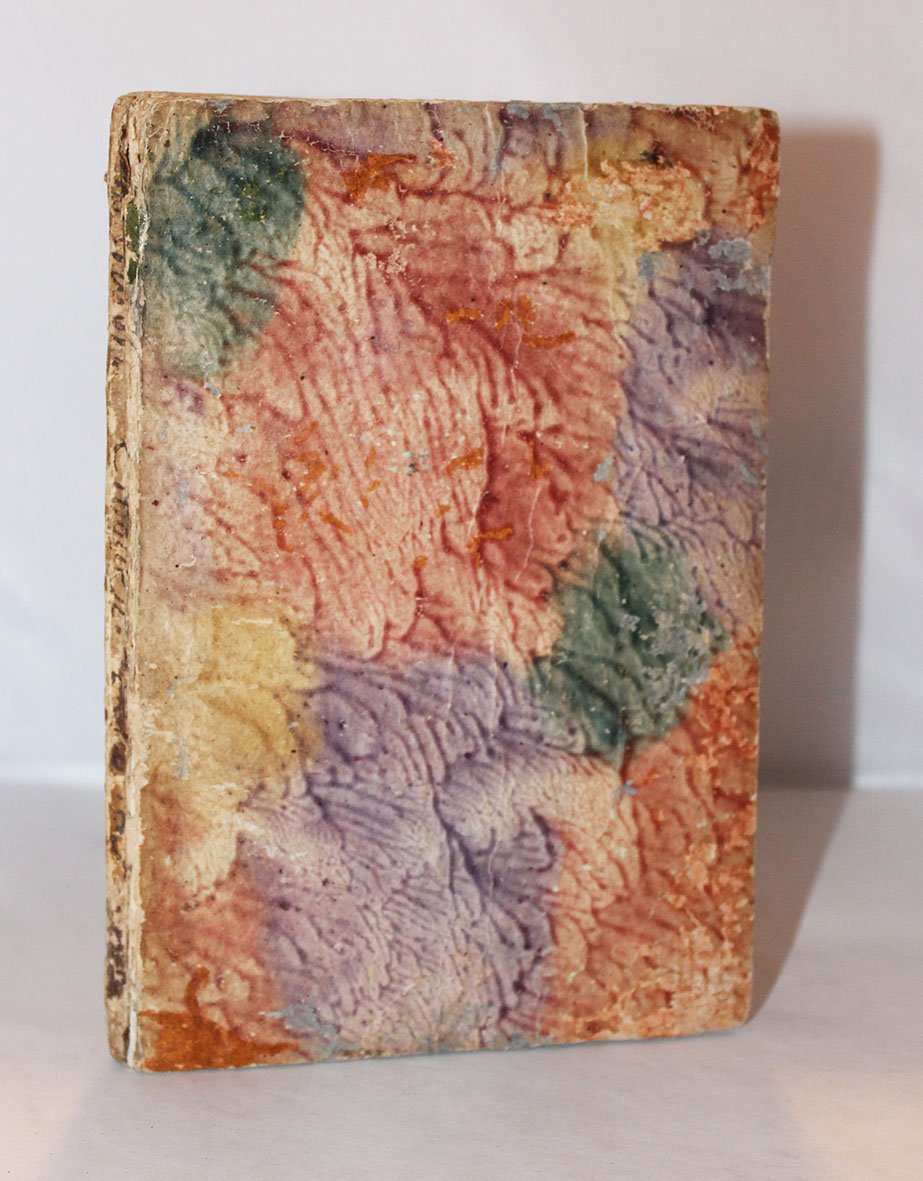In 8vo (mm 177x120). Pp. 96. Segnatura: a-f8. Marca xilografica al frontespizio (Minerva con il motto: “La felicita delle lettere”). Finalini xilografici. Lievi aloni e leggere fioriture. Cartonato marmorizzato coevo con titolo manoscritto al dorso. Leggere mancanze al dorso, macchie e abrasioni ai piatti. Un po' sciolto. Ex libris al margine inferiore del frontespizio “Gian-Carlo Baracchi”.
