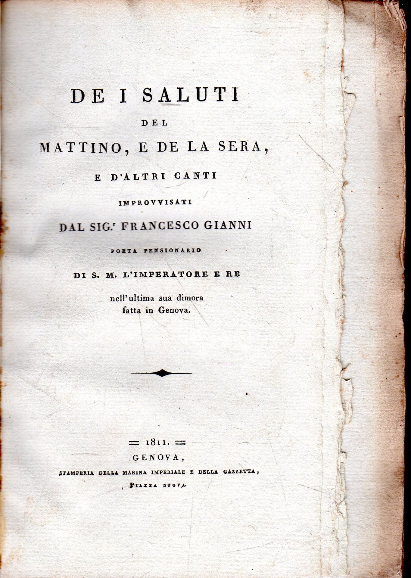 "Improvvisati dal Sig.r Francesco Gianni poeta pensionario di S. M. l'imperatore e re nell'ultima sua dimora fatta in Genova".