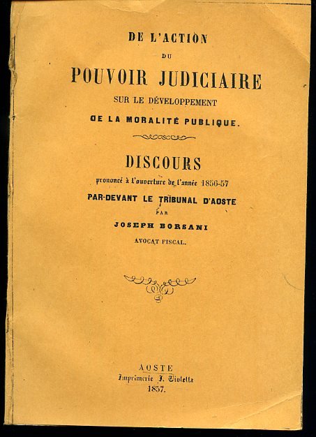 De l'action du pouvoir judiciaire sur le développement de la moralité publique. Discours prononcé à l'ouverture de l'année 1856-57 par devant le tribunal d'Aoste