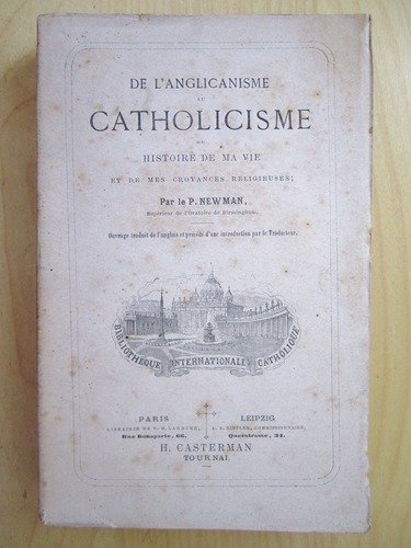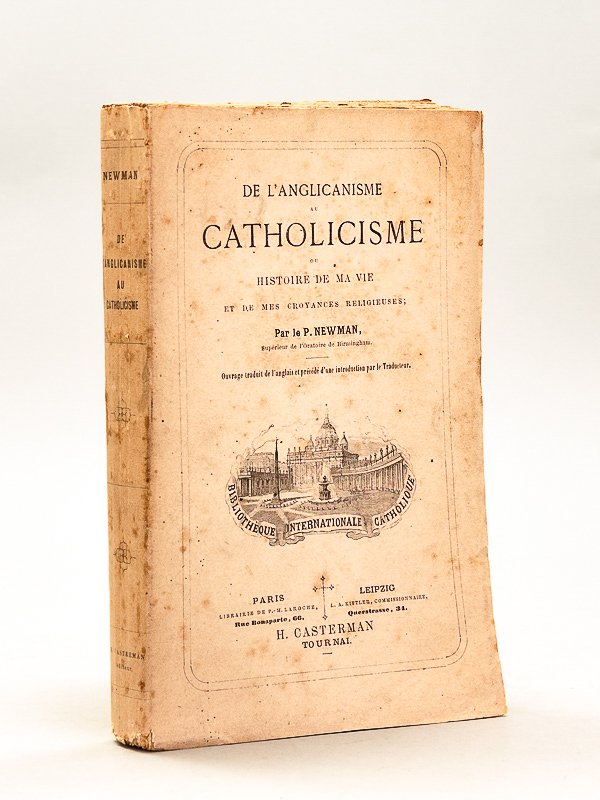 1 vol. in-12 br., coll. Bibliothèque internationale catholique, H. Casterman, Tournai Paris Leipzig, 1865, 398 pp. Bon état pour cette édition originale de la traduction française de l’autobiographie du cardinal Newman. Introuvable.