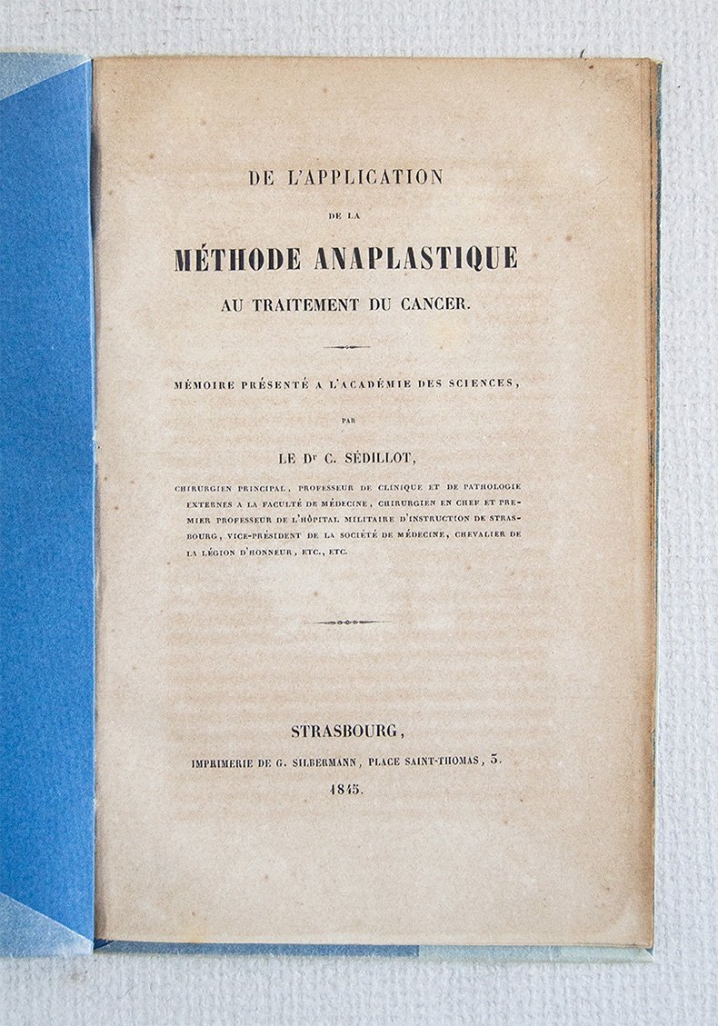 De l'application de la méthode anaplastique au traitement du cancer. Mémoire présenté a l'Academie de Sciences.