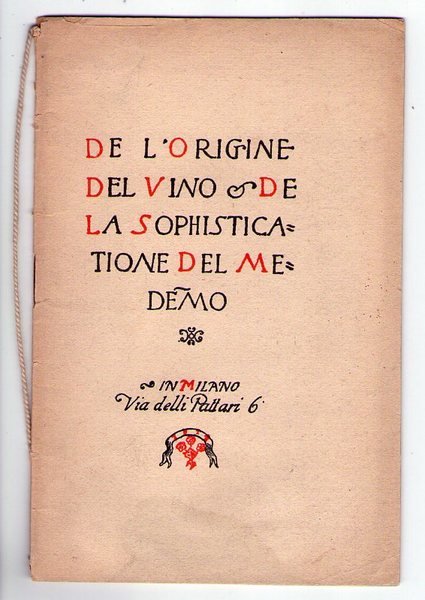 De l'origine del vino. De la sophisticatione del medemo. Bottiglieria Astigiana.