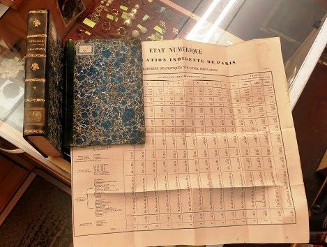 In-8° pp. XXXIII-504-550 con 1 tabella ripiegata f.t. testo su due colonne. Legature in mezza pelle coeva. Vecchi timbri all'interno. Edizione contemporanea alla prima di Parigi di uno dei più importanti trattati sulla storia dell'indigenza considerata nei suoi rapporti con l'economia sociale, la storia e la statistica.Esemplare molto buono.