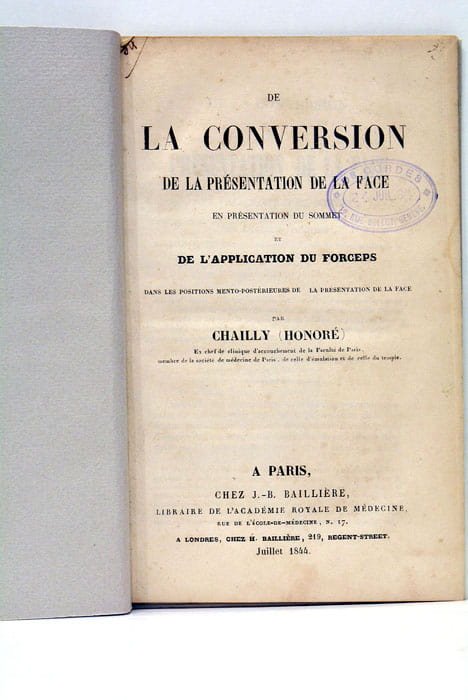 1 feuillet. 32 pages. 1 feuillet. (20x13 Cm). Broché, couverture postérieure muette. Edition Originale. Opuscule d'obstétrique présenté par ce chef de clinique d'accouchement de la Faculté de Paris. 8 figures dans le texte. Cachet sur le titre.