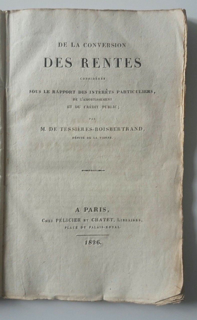 DE LA CONVERSION DES RENTES PAR M. DE TESSIERES-- BOISBERTRAND PELICIER 1826
