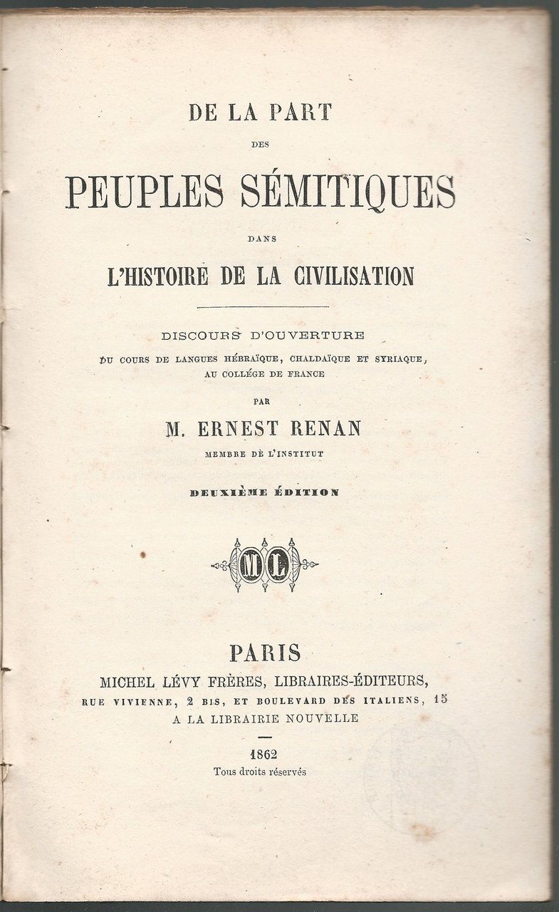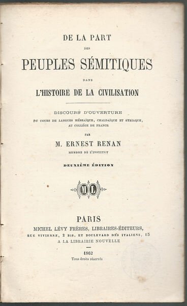 De la part des peuples sémitiques dans l'histoire de la civilisation.