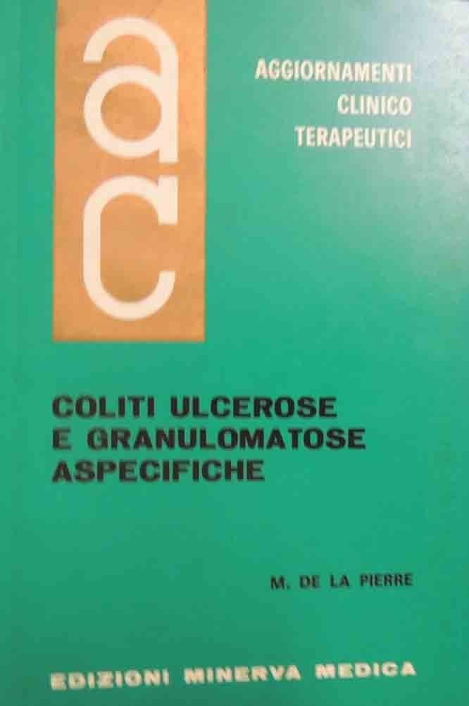 M. De La Pierre, Coliti ulcerose e granulomatose aspecifiche, numero monografico di Aggiornamenti Clinicoterapeutici. Collana monografica mensile, vol. VIII, n. 9, ottobre 1967, Edizioni Minerva Medica, s.l. (ma stampato a Saluzzo, presso la Tip. Ed. Minerva Medica), pp. X, 96, ill. b.n. e col., cm 22, br. ed. Piccolo timbro di appartenenza alla seconda di copertina, all’occhiello e al frontespizio. Minime tracce d’uso alla brossura, lievissima ingiallitura della carta, per il resto ben conservato.