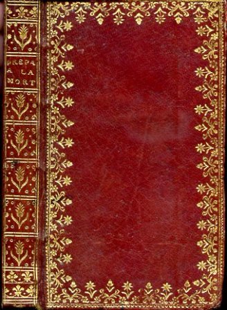 In-12° (168x98mm), pp. XXI, (2) di approvazioni, 225, assai bella legatura coeva in pieno marocchino rosso con ricca bordura floreale e vegetale in oro lungo il perimetro dei piatti. Dorso liscio con titolo, fiorellini, filetti in oro, tagli dorati, sguardie marmorizzate policrome. Fregio ad arabesco al titolo, testatine e capilettera ornati incisi su legno. Fra le pp. 224-225, una tavola incisa su rame a tinta seppia con raffigurazione del sepolcro di Robert François Joseph Lemaire, traduttore del volume. Duplice ex-libris. Bellissimo esemplare. Prima edizione francese della 'Manuductio ad coelum' (1658, poi volto in italiano col titolo 'Apparecchio alla morte') del cardinale Bona (Mondovì, 1609-Roma, 1674). Fra le opere devozionali più fortunate di tutte il Seicento, venne molte volte ristampata e tradotta in numerose lingue e molti furono coloro che la paragonarono, per l'intensità della tensione spirituale, all'Imitazione di Cristo'. 'The 'Manuductio' is often compared to the 'Imitation of Christ' on account of simplicity of the style in which the solid doctrine is taught. It has always been extremely popular. Besides passing through fourteen Latin editions in four decades, it has been translated into Italian, French, German, Armenian and Spanish. The latest translation is in English by Sir Robert L'Estrange (A Guide to Eternity, London 1900).' (Leo F. O'Neil in Catholic Encyclopaedia).