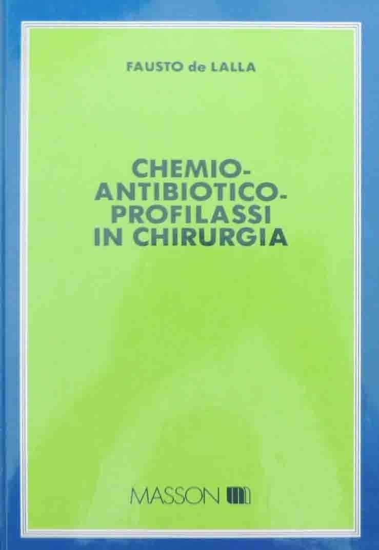 Fausto de Lalla, Chemio-antibiotico-profilassi in chirurgia, Masson, Milano 1988, pp. XII, 196, cm 25, cart. ed. Pubblicazione fuori commercio. Omaggio della Bayer Italia S.p.A. Timbro d’appartenenza all’interno del piatto enteriore. Timbro e firma d’appartenenza al frontespizio. Perfetto.