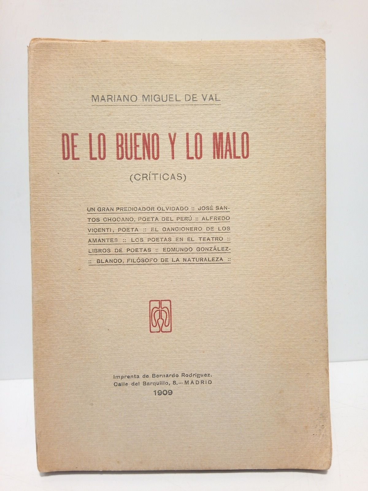 De lo bueno y lo malo (Críticas): Un gran Predicador olvidado, Fray Alonso de Cabrera; José Santos Chocano, poeta del Perú; Alfreco Vicenti, poeta; El Cancionero de los Amantes de Teruel; Los poetas en el teatro; Libros de poetas; Edmundo González-Blanco, filósofo de la Naturaleza