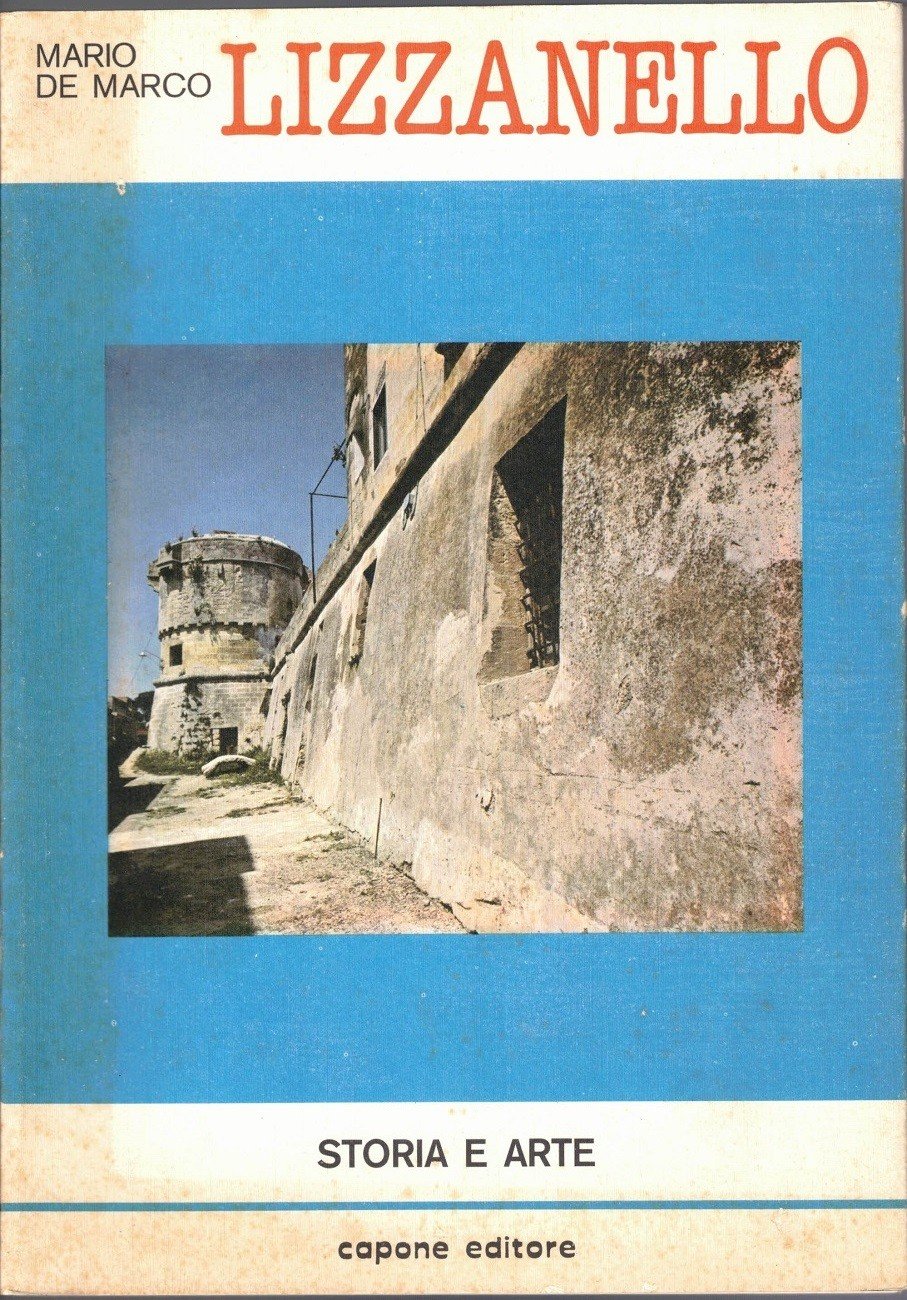 Mario De Marco, Lizzanello. Storia e arte, Capone Editore, s.l. (ma stampato a Manduria, presso la Tiemme s.r.l.) 1983, pp.109, ill. b.n. e col., cm 24, br. ed. con alette. Collana Storie municipali, vol. 8. Indice: Presentazione del sindaco – Presentazione – Il territorio e le origini – Dal Medioevo all’Età moderna – Le chiese e il culto – Dall’Ottocento ai giorni nostri – Dai dintorni a Merine. Leggeri segni del tempo, per il resto esemplare ben conservato.