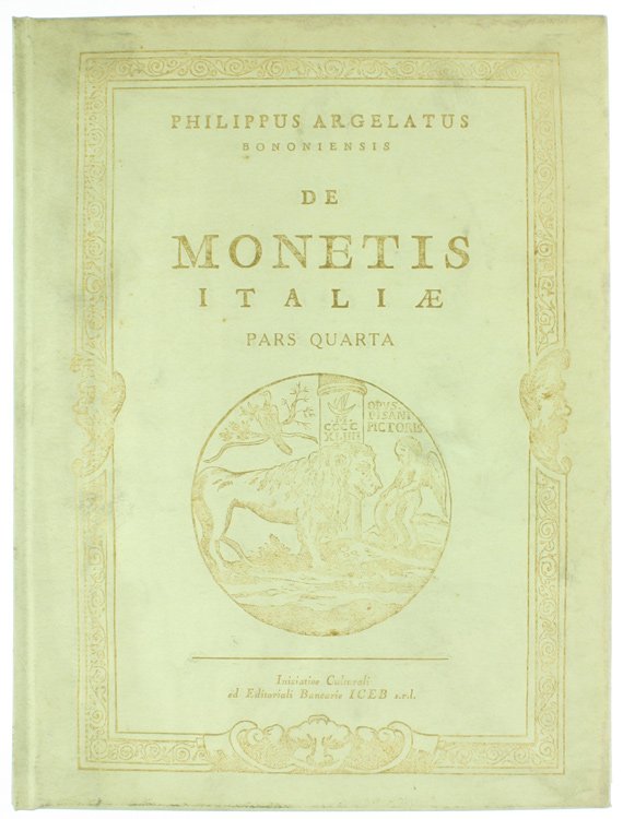 (Codice NU/0108) In 4° (cm 31,5) (14)344 pp. Quarto volume (di 6), preziosa ristampa anastatica dell'edizione del 1752. Tiratura di 2000 copie numerate, (esemplare n.1083). Contiene vari studi anche inediti sulle zecche italiane dal medioevo al secolo XVIII. Tra gli autori: G.Villani e G.Gentili, C.Boissinio, F.Fabrini, A.Graffioni sulla storia del Fiorino d'oro fiorentino; uno scritto di B.Davanzati, Lectio Academica de Monetis; uno scritto di A.G.Scaruffi e B.Pratisolio; e 6 "Documenta" sulla monetazione bolognese nei sec. XIII-XVI. Carta forte avorio, bel frontespizio rosso/nero, alcune tavole fuori testo. Legatura editoriale imitazione pergamena all'uso antico, titolo entro cornice oro al piatto e al dorso. Buon stato. ~~~ SPEDIZIONE IN ITALIA SEMPRE TRACCIATA