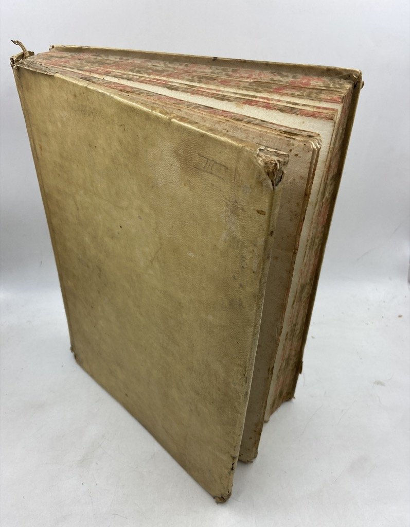 - Privo dell’occhietto, marcati segni d’uso e piccole mancanze sulla legatura; all’interno alcuni fori di tarlo e qualche annotazione a matita. Esemplare da studio.