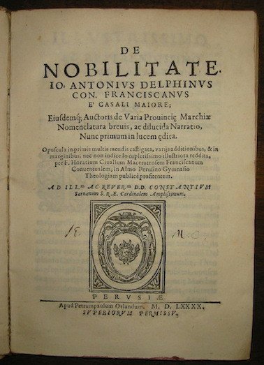 De nobilitate. Io. Antonius Delphinus con. franciscanus e Casali Maiore; eiusdemque auctoris De varia Provinciae Marchiae nomenclatura brevis, ac dilucida narratio, nunc primum in lucem aedita.