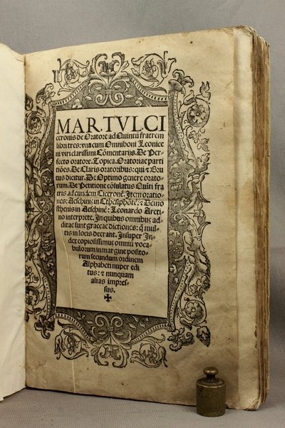 De oratore ad Quintum fratrem libri tres: vna cum Omniboni Leoniceni viri clarissimi commentarijs. De perfecto oratore. Topica. Oratoriae partitiones. De claris oratoribus: qui & Brutus dicitur. De optimo genere oratorum. De petitione consolatus Quinti fratris ad eundem Ciceronem. Item orationes: Aeschinis in Cthesiphontem: & Demosthenis in Aeschinem: Leonardo Aretino interprete.
