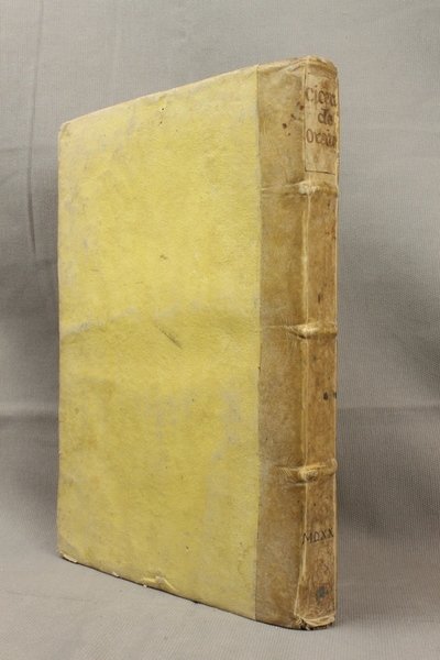 In-folio; 4 cc., CLXXIX cc. (ultima bianca assente); titolo entro ampia cornice xilografica a festoni, vignetta in legno al principio. Legatura settecentesca in tutta pergamena con piatti ricoperti in carta gialla. Segnetto di tarlo al margine interno bianco di poche carte centrali, un taglietto al titolo, occasionali bruniture e macchioline. Ex libris a stampa al contropiatto anteriore del conte Alessandro Magnaguti, noto collezionista di libri e monete (1887-1966). Esemplare a buoni margini.