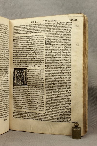 Rara edizione veneziana illustrata da una cornice xilografica al frontespizio ripresa dall'edizione delle Epistole famigliari del 1519 e da una grande xilografia alla carta A1r, gi… apparsa nell'edizione dell?Opea di Orazio del 1509.