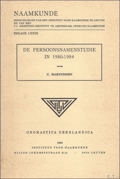 Originele uitgeversomslag, 16x24cm, 41pp. Onomastica Neerlandica. Naamkunde. Mededelingen uitgegeven door de vereniging voor naamkunde te Leuven en van het P.J. Mertens - instituut te Amsterdam, afdeling voor naamkunde. Overdruk uit de handelingen van de koninklijke commissie voor toponymie en dialectologie.