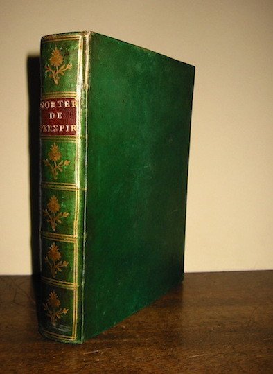 4to (cm. 19,7), 10 cc.nn., 560 pp., 22 cc.nn. Con un ritratto dell’A. più volte ripiegato e tre tavv. ripiegate in fine. Frontespizio stampato in rosso e nero con graziosa vignetta calcografica. Cartonato rigido verde coevo con fili, fregi e titolo oro su tassello in pelle al ds. (piccola fenditura alla cerniera anteriore). Tagli rossi. Esemplare in ottimo stato di conservazione. Rara seconda edizione (la prima è del 1725). Studio approfondito sulla traspirazione la cui parte finale è dedicata ai Commentari sugli aforismi del Santorio che fu il primo, grazie al dispositivo della stadera medica, a studiare le trasformazioni metaboliche. Blake, p. 180.