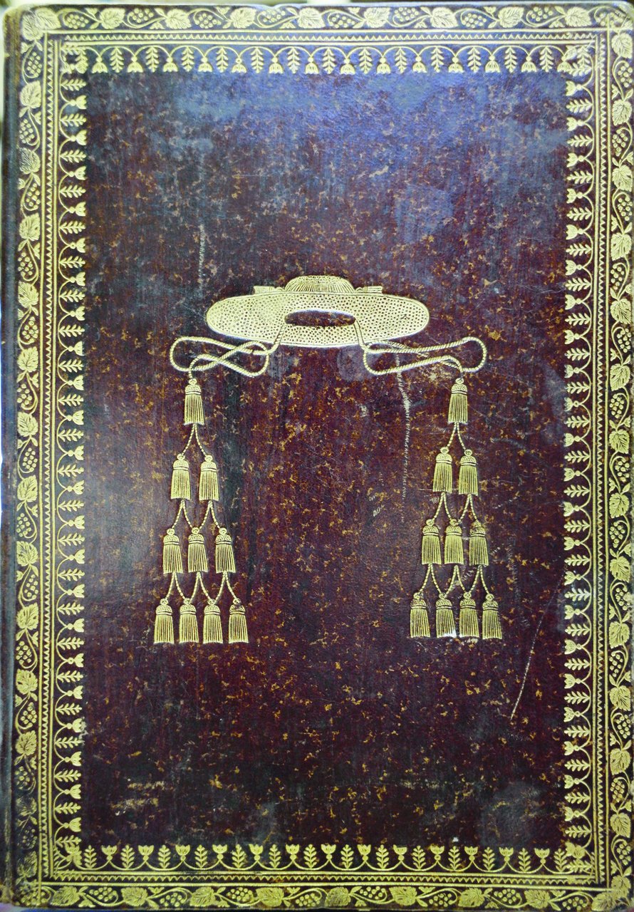 In-8 (mm. 237x157), bella legatura cardinalizia in p. pelle coeva, decorata ai piatti da eleganti cornici floreali impresse in oro, titolo oro al dorso, tagli dorati, pp. 32. Testo con alone.