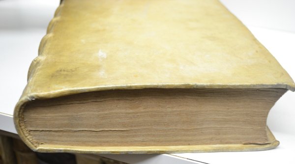 - bella e solida legatura coeva in piena pergamena rigida - dorso a 5 nervi con titolo manoscritto - tagli rossi