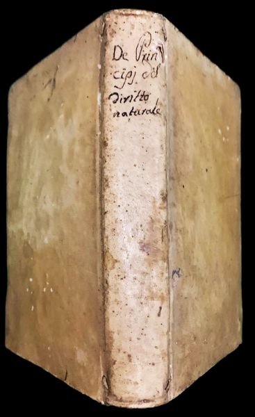In 4° piccolo (17,8x11,4 cm); (16), 356, (6) pp. Legatura coeva in piena pergamena. Titolo e autore chiosati da mano coeva al dorso. Qualche pagina uniformante brunita e qualche piccola macchiolina di foxing dovute alla qualità della carta utilizzata e per il resto, nel complesso, esemplare in buone-ottime condizioni di conservazione. Prima rarissima edizione, nessun esemplare censito in ICCU, di questo importante studio che è considerato in primo libro in italiano scritto sullargomento, opera del celebre giureconsulto, storico e filosofo, originario di Polla, Paolino Giovanni Giuseppe Origlia (Polla in provincia di Salerno 24 luglio 1718 - 1784). Lautore, laureato a Napoli in legge, nonostante gli fossero state offerte le cariche di aiutante di studio del cardinale Cienfuegos Ministro di Carlo VI a Roma e quella di coadiutore di suo zio materno Basilio Forlofia che era il custode della Real Biblioteca di Vienna, rimase a fare il maestro di scuola a Napoli, sembra anche su pressioni del padre. Durante questo periodo di insegnamento compilò, sulla stregua del dibattito illuminista, la sua prima opera, stampata in poche copie, De' principj del dritto naturale. Fu proprio grazie a questo scritto che portò al Cappellano del Re Monsignor Galiani che gli fu offerta il ruolo di Lettore onorario di Legge nellateneo partenopeo e gli venne commissionata la sua opera più celebre. Tale opera ebbe una storia editoriale travagliata (a causa di alcune inimicizie il primo volume gli venne sequestrato e dovette aspettare diverso tempo, lintervento del Principe di San Severo e ladesione di Origlia ai massoni napoletani dei quali il Principe era il Gran Maestro, prima di riuscire a stampare il secondo), Istoria dello studio di Napoli compilata secondo i più moderni concetti storiografici e dopo profondi studi negli archivi napoletani, salernitani e di Montecassino. Ottenuto il giusto riconoscimento del suo lavoro, venne promosso a Regio Giudicato di Matera nel 1769, a governatore dellIsola di Capri nel 1770, a Regio Auditore nellUdienza di Calabria ultra, carica dalla quale poi, nel 1780 passò a Capo della Ruota (la Sacra Rota) della Calabria Ultra fra le massime cariche per un giurista. Amico intimo di Raimondo de Sangro, Principe di San Severo ne fu anche il biografo. Lopera è inserita anche nella Bibliografia di Paolo Galli dedicata alla storia del diritto dautore al numero 174. Prima rarissima edizione in buone-ottime condizioni di conservazione. Rif. Bibl.: BN Roma 13.16.B.26. I, 398.