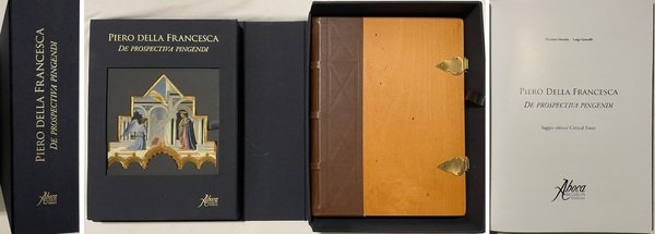 De prospectiva pingendi. Biblioteca Panizzi di Reggio Emilia, Ms. Regg. a 41/2. Aboca Museum Edizioni, 2008. All’interno gli studi di Piero della Francesca sulle regole della prospettiva, con una serie di note e di straordinari disegni autografi dell'artista. Commentario a cura di M. Mussini, L. Grasselli. Legatura in mezza pelle di montone e piatti in legno di faggio, chiusure in ottone. Formato 24x34 cm. Pagine 225. Cofanetto di custodia. Tiratura limita e numerata. Condizioni ottime.