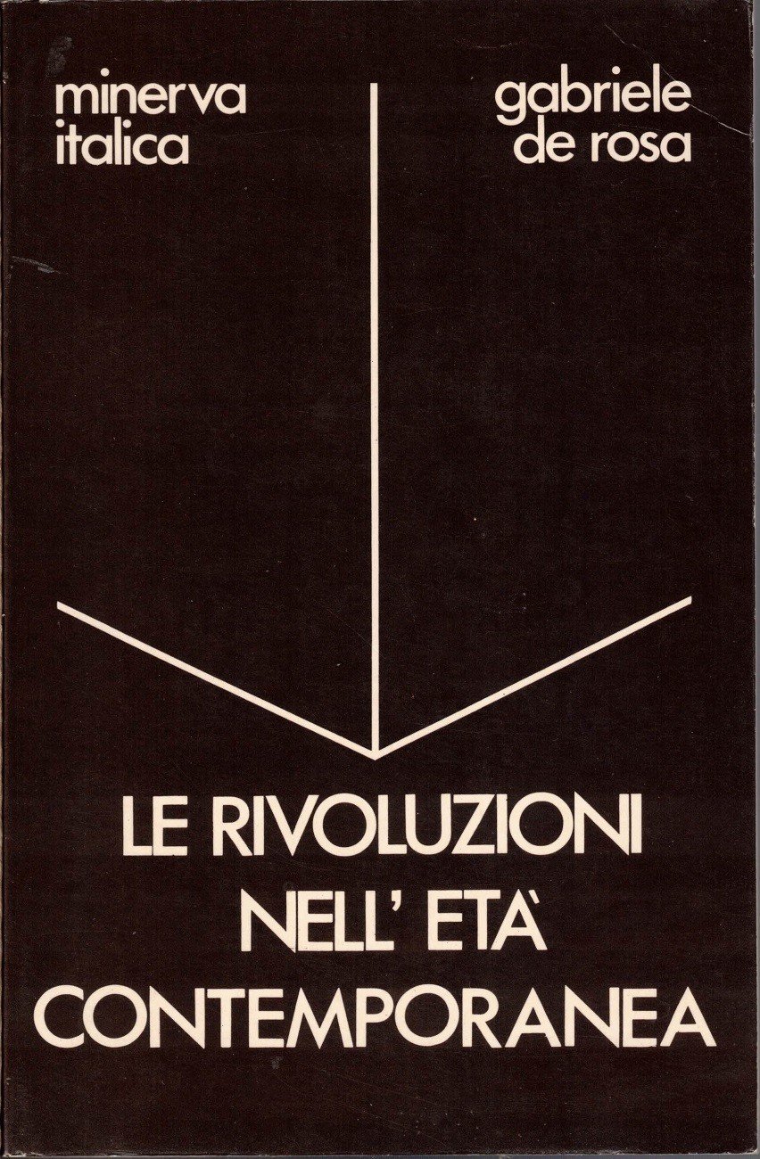 Gabriele De Rosa, Le rivoluzioni nell’età contemporanea, Minerva Italica, Bergamo 1974, prima ed., pp. 495, cm 23, br. ed. Collana Politica e società: saggi e documenti, vol. 2. Copia saggio-campione gratuito sprovvista dell’apposito talloncino alla copertina posteriore. Lievi tracce d’uso, leggeri segni di piegatura al dorso, minima brunitura della carta, per il resto esemplare ben conservato, con brossura solida e interno pulito e ben tenuto.