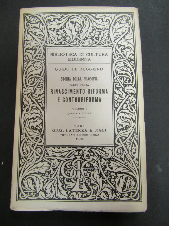 De Ruggiero Guido. Rinascimento Riforma e Controriforma. Vol. I. Gius. Laterza e figli. 1950