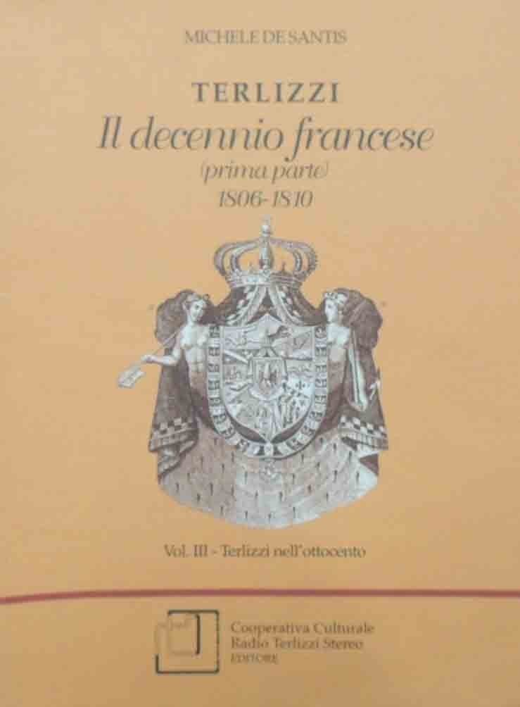 Michele De Santis, Terlizzi. Il decennio francese. Prima parte. 1806-1810, Cooperativa Culturale Radio Terlizzi Stereo Editore, Terlizzi 2000, pp. 294, ill. b.n., cm 21, br. ed. Collana Terlizzi nel tempo. Fa parte di: Terlizzi nell’Ottocento, vol. 3. Timbro Copia Omaggio al frontespizio. Minime tracce d’uso alla brossura, per il resto perfetto.