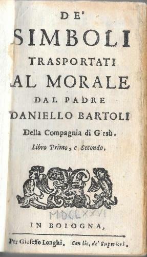 De' Simboli trasportati al Morale dal Padre Daniello Bartoli della Compagnia di Giesù. Libro Primo e Secondo