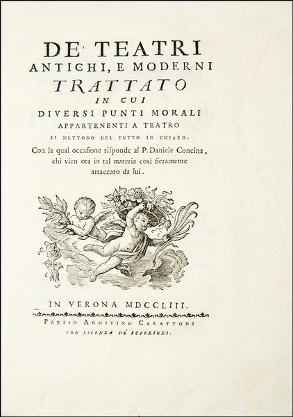 De' teatri antichi e moderni. Trattato in cui diversi punti morali appartenenti a teatro si mettono del tutto in chiaro. Con la qual occasione risponde al P. Daniele Concina, chi vien ora in tal materia così fieramente attaccato da lui.