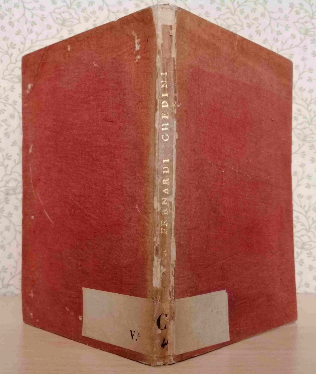 Volume in 12, brossura rigida 'alla bodoniana' color salmone, titolo in oro al dorso, al verso del primo piatto incollato grande exlibris nobiliare inciso in rame ed annotazione manoscritta 'Frati 9372' (richiama la nota bibliografia), sguardie, splendido frontespizio con amplissima vignetta incisa in rame da Zambelli (cippo adorno di festoni su cui posata una corona d'alloro, sul frontone ritratto a bassorilievo del Ghedini in ovale con ai lati la lira ed il caduceo a simboleggiare la professione medica e l'arte poetica, a lato, sullo sfondo del cippo, piccolissima veduta della citt di Bologna con la classica Torre degli Asinelli inclinata), 71 pp.Degnissimo e sentito omaggio fatto dagli amici all'esimio Bolognese venuto a mancare. Notevole la succinta e pregnante biografia, esemplari le diverse dimostrazioni d'affetto e cordoglio dei vari personaggi, alcuni di grande fama. Splendidamente impaginato, carta forte e greve. Di buona rarit, in ottimo stato, notevole.