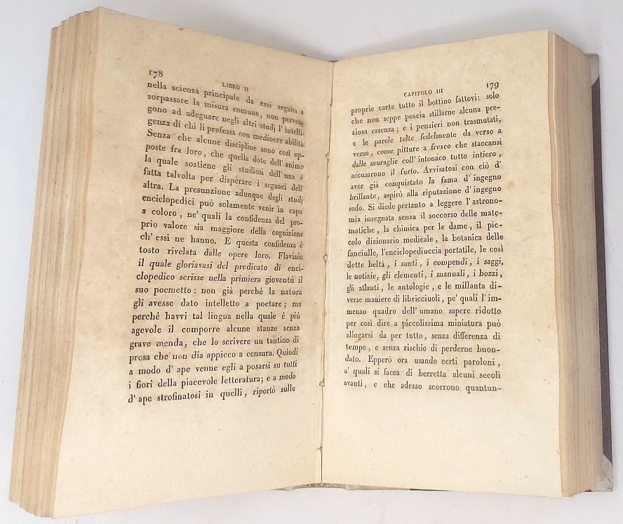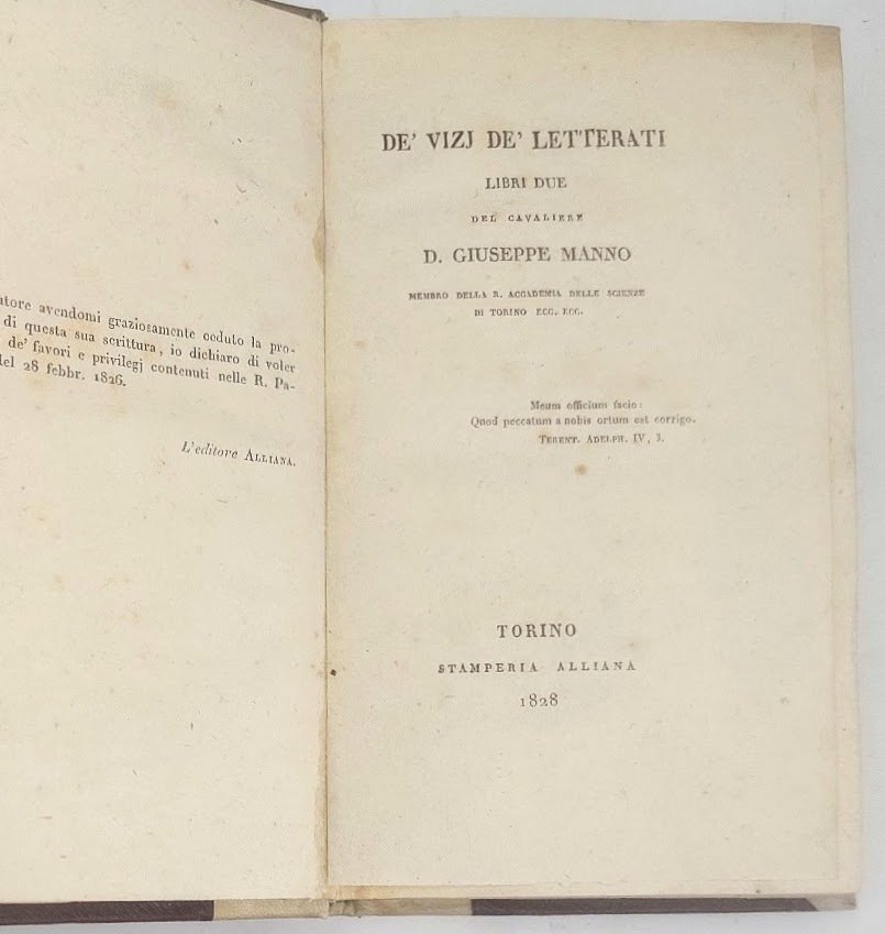 >in-16, 349, (3), legatura del tempo m. perg., tassello in pelle con titolo in oro al dorso, copertine editoriali. conservate. Prima edizione di questa "arguta trattazione (nella quale l'autore) combatté, prima del Manzoni, il romanzo storico, e si mostrò avversario deciso del romanticismo" (RENDA-OPERTI, Diz. st. letter. ital., p. 697). Il Manno (Alghero 1786-Torino 1868) fu storico (Storia di Sardegna e Storia moderna della Sardegna), letterato (Della fortuna delle parole) e politico, prima come segretario particolare di Carlo Felice, poi senatore e presidente del Senato. Buon esemplare, lieve uniforme brunitura. Biancardi-Francese p. 287.