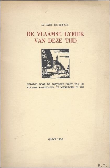 originele uitgeversomslag geillustreerd ( Verbaere, Herman) z/w, 16x24cm, 39pp. Gevolgd door de poetische oogst van de vlaamse poeziedagen te Merendree in 1949. Overdrukt uit het Cultureel Jaarboek voor de Provincie Oostvlaanderen.